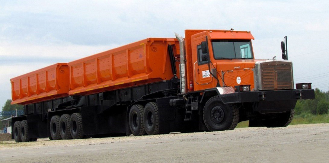 Автопоезд состоит тягача и прицепа, специализируется на добыче алмазов компании "АЛРОСА". Он используется для транспортировки руды с рудника на завод, около 170 км.